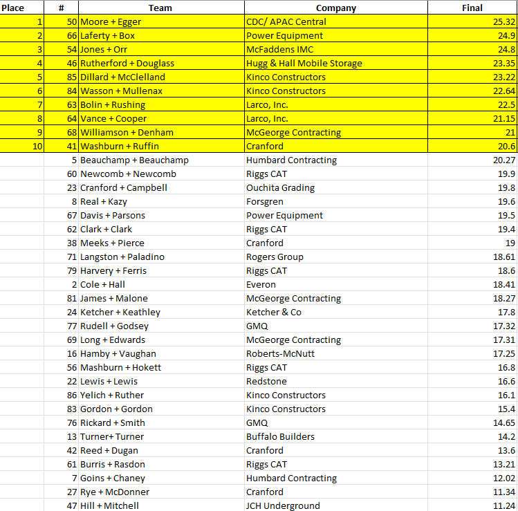 Scores will be posted within 15 minutes of final weigh-in. Thank you for your patience.